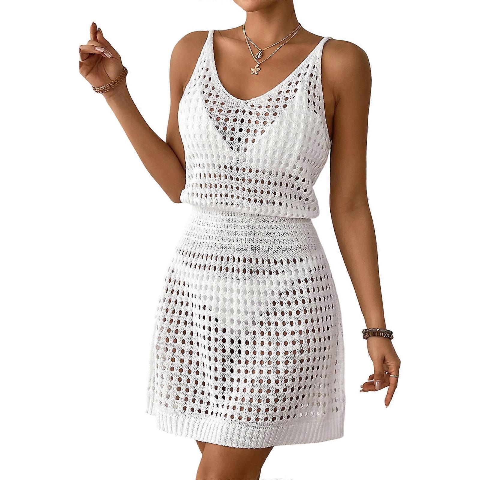 S To XL Size Women's Beach Coverup Dress Features V Neck Cut Out Design Quick Dry Fabric For Water Sports White XL