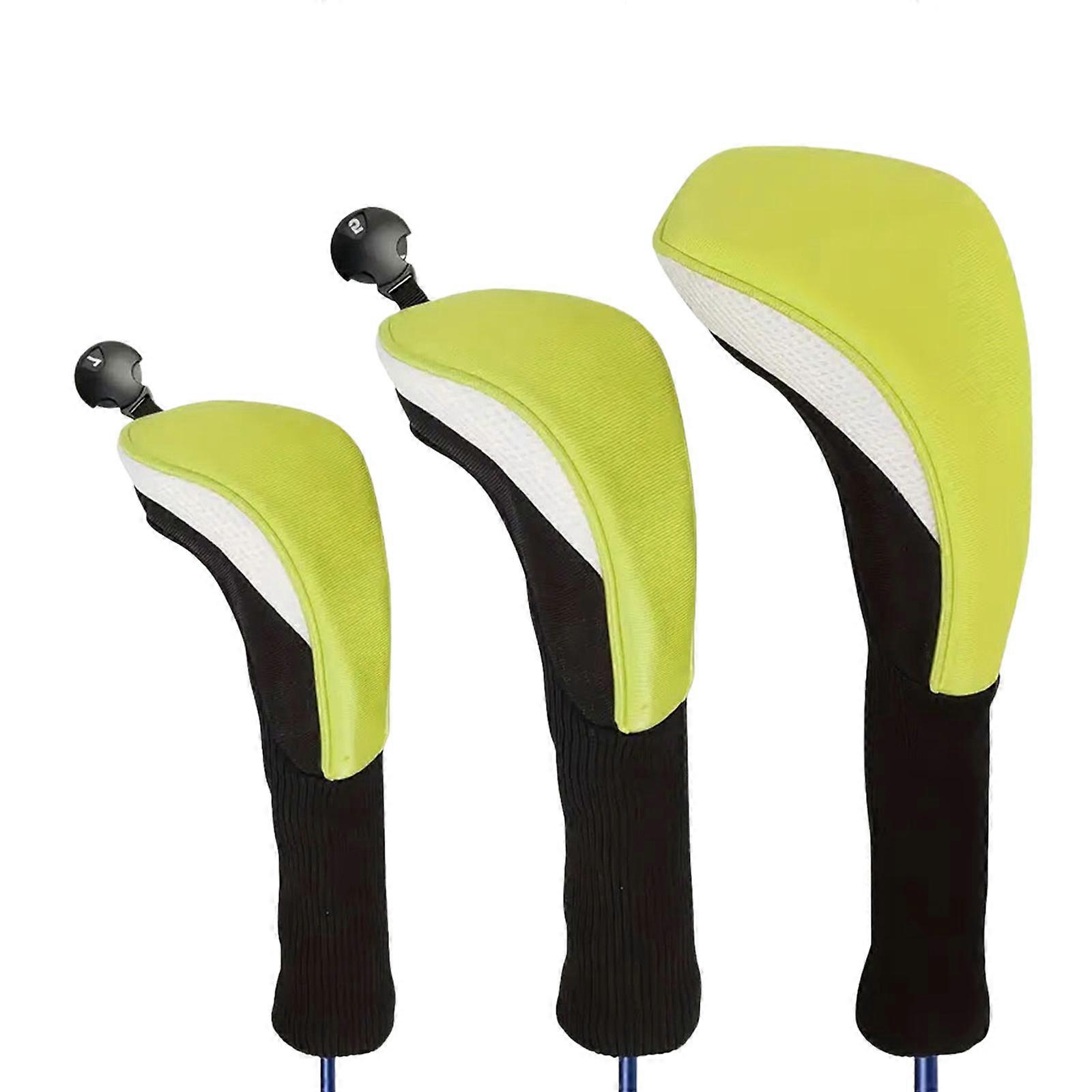 3Pcs Long Neck Mesh Golf Club Cover with Interchangeable Number Label Soft Wood Golf Club Driver Headcovers Enduring Yellow