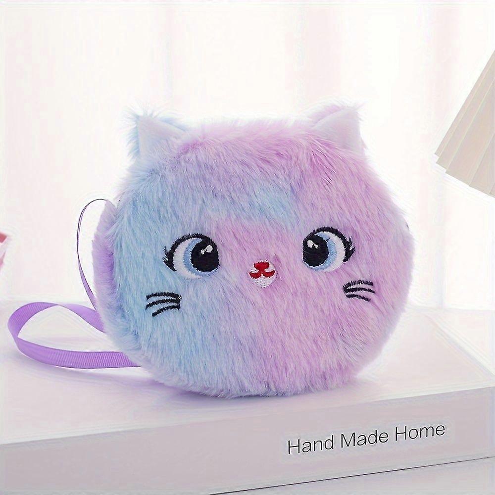 Girls' Cute Plush Cat Crossbody Bag with Zipper - Lightweight, Cartoon Embroidered Shoulder Purse for Youngsters [jkw]
