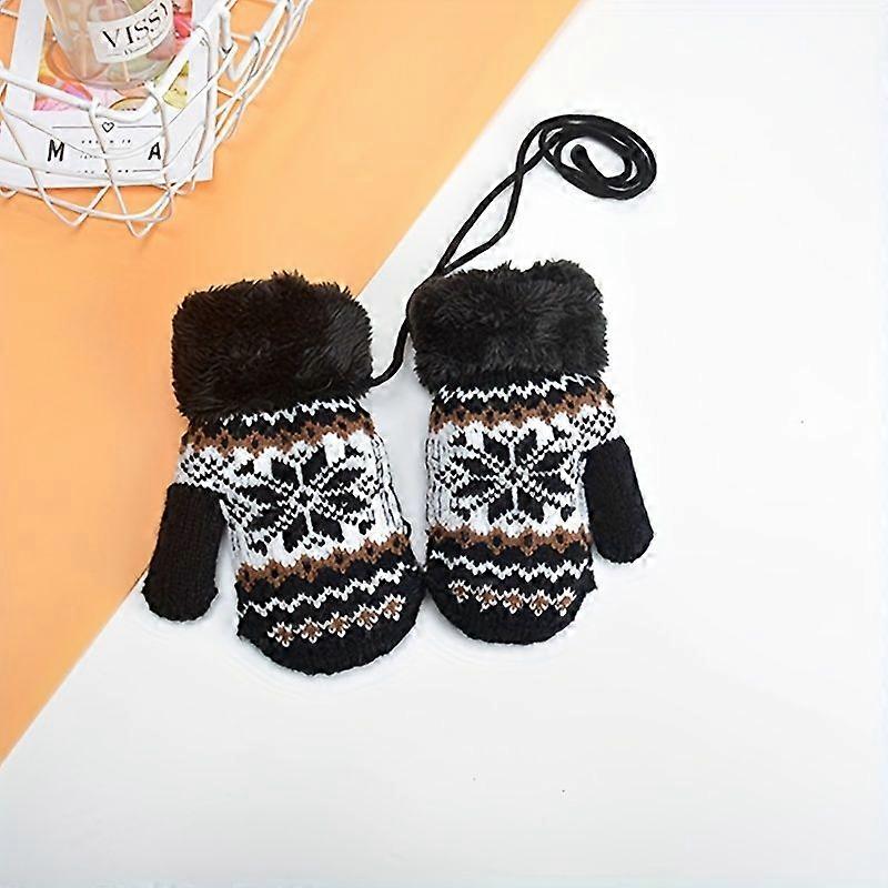 Winter New 3-8 Years Old Boys and Girls Double Layer Octagon Floral Thickened Fleece Warm Gloves [jkw]