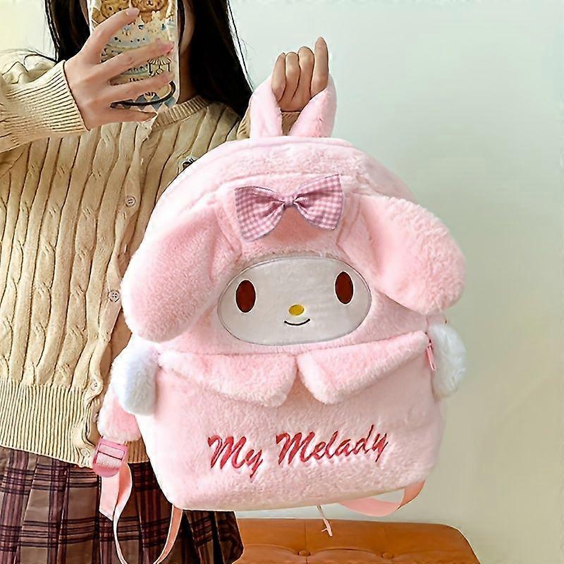 Sanrio My Melody Large Capacity Soft Shell Backpack, Cute Cat Design, Nylon Polyester, Non, Zipper Closure, Ideal for Au [jkw]