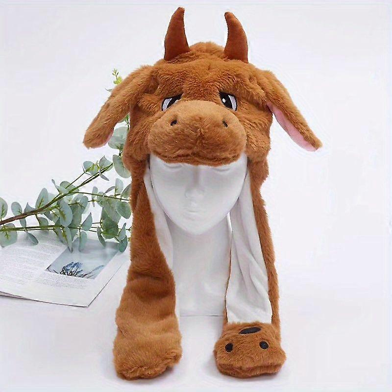 Cute Soft Squeezable Long-Ear Moving Animal Dog Ear Airbag Beanie, Thickened Warm Pullover Hat for Women, Novelty Slouch [jkw]
