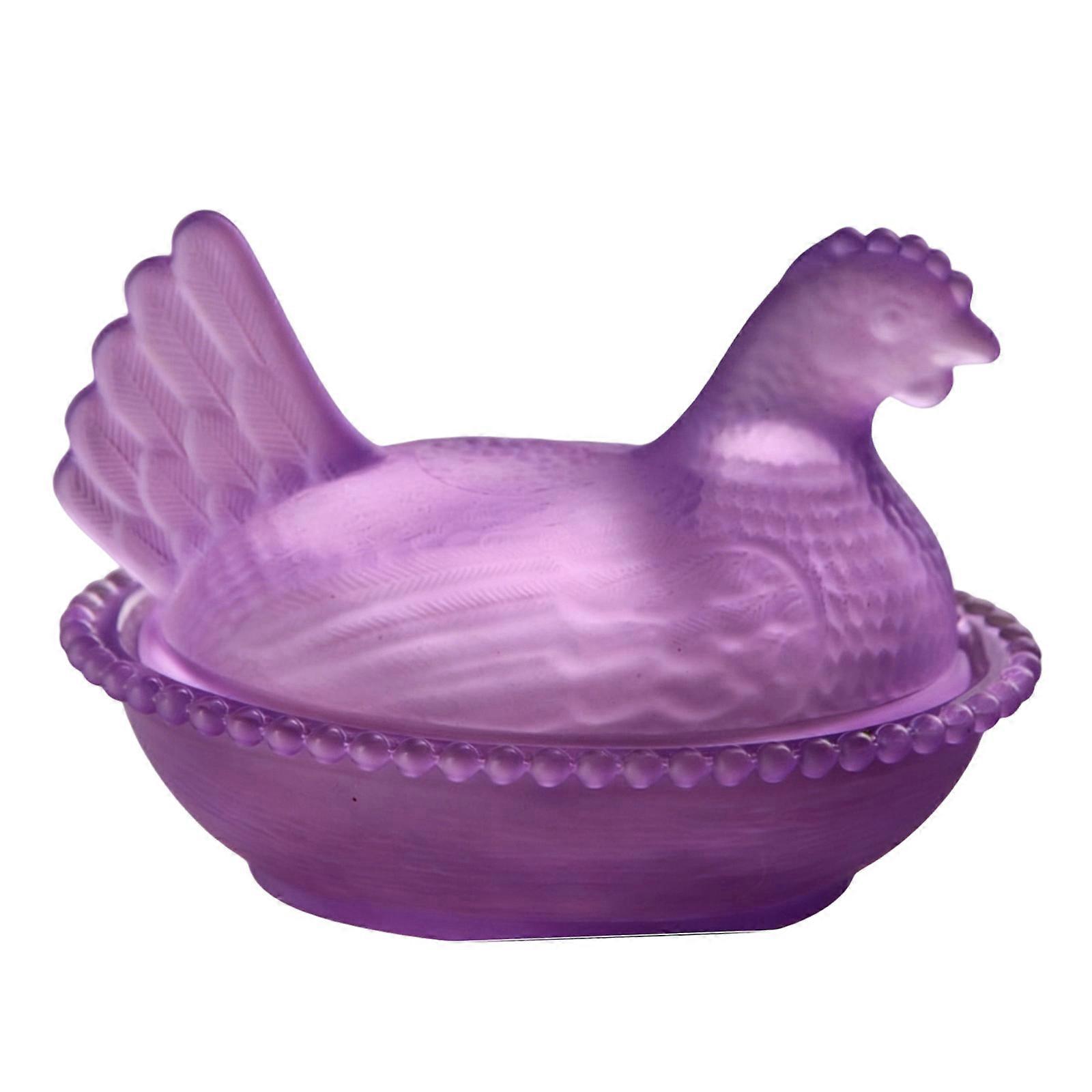 Crystal Glass Hen on Nest Candy Dish with Lid Retro Candy Bowl,Candy Jar Table Decorations for Home Office Kitchen Frosted P urple