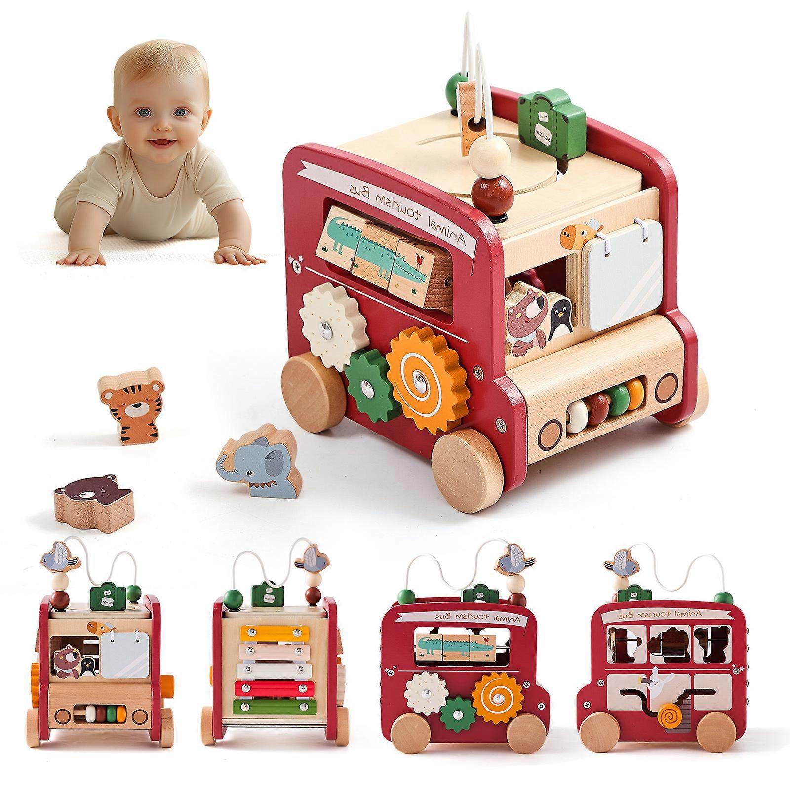Push Pull Educational Activity Bus Toy For Toddler Shape Matching And Role Play Game Bus Toy Enhancing Social Ability Red