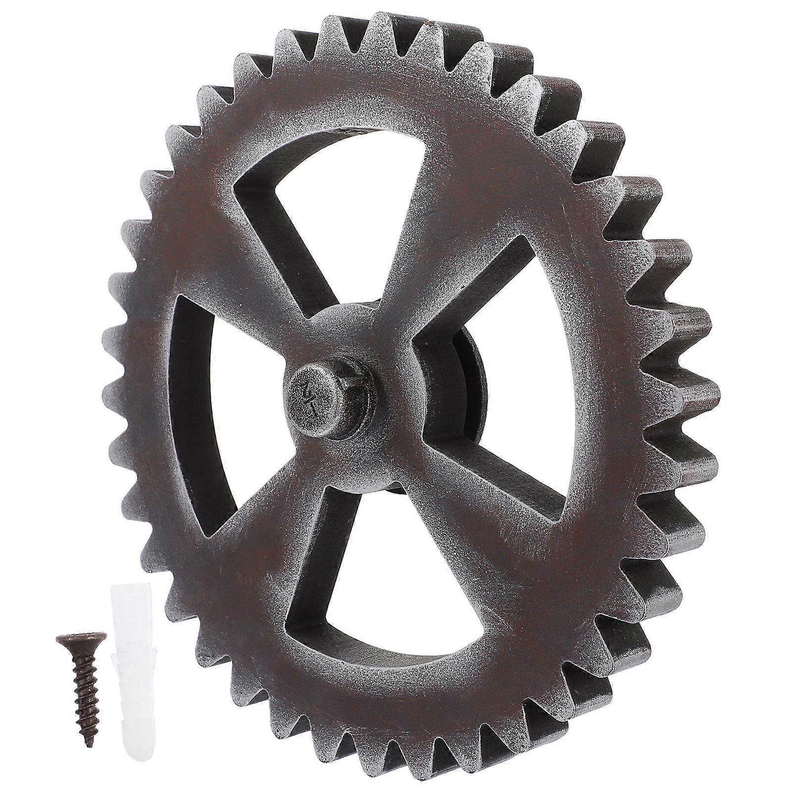 Dark Brown Iron Wood Gear Decor for Home Bar Cafe Wall Hanging Antique Style 12 Inch
