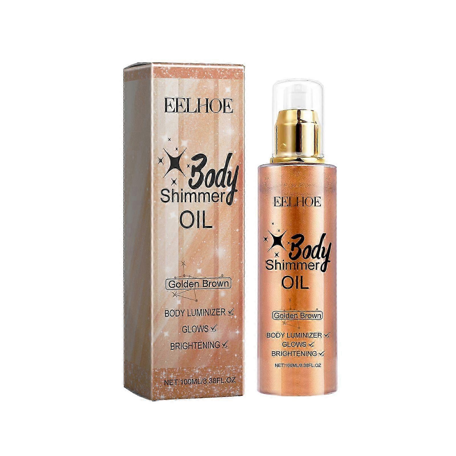 Body Glitter Oil, Golden Brown Glitter Oil for Face & Full Body, Party Beach, 100Ml