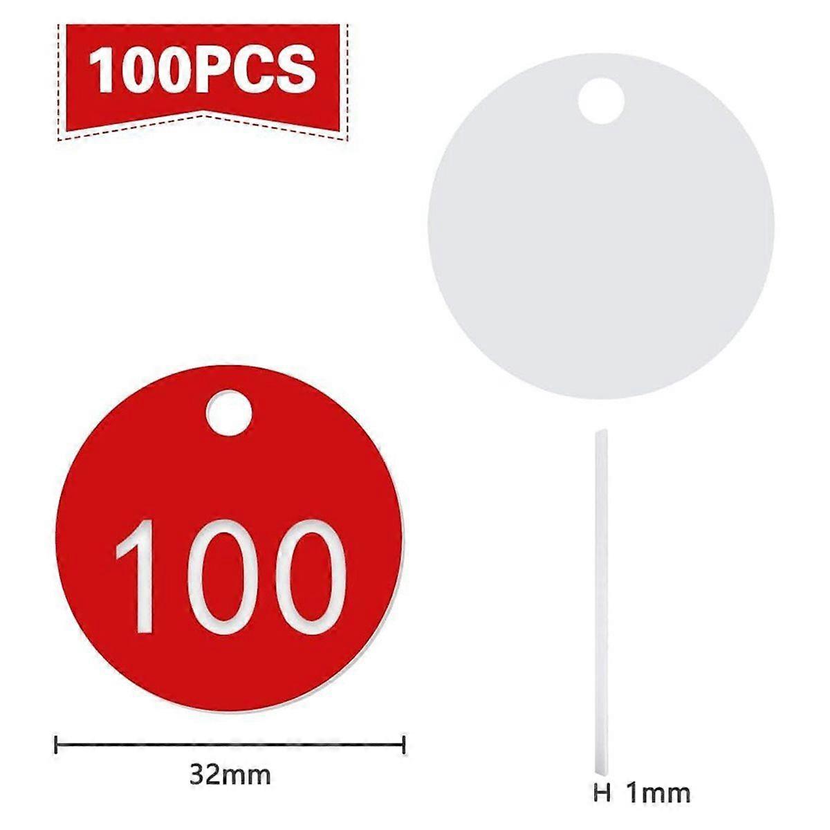 Signage Storage Doorplate Number Tags - 100pcs Engraved Numbered Tags (1-100 Red) for Hotel, Mailbo