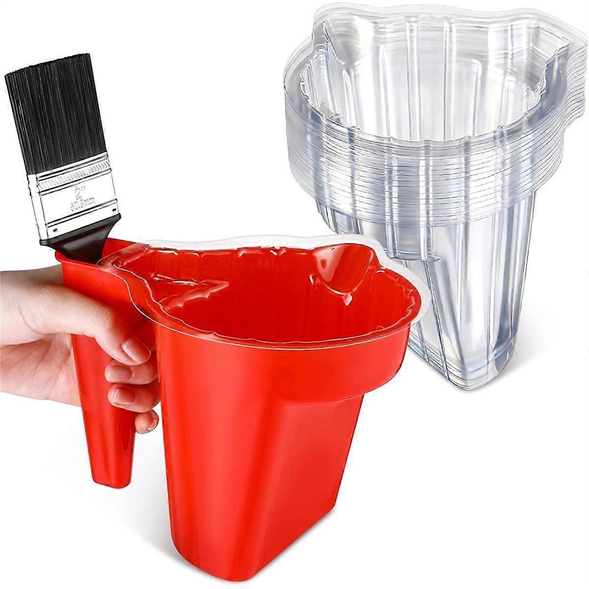 each set includes 1 piece red paint cup (5.12 x 5.12 inch/ 13 x 13 cm), 18 pieces disposable liners, and 1 piece black 2 inch paint brush; No need to buy tools separately, this convenient kit gives you everything required to painting right away, saving you time, money, and hassle the paint cup features a that holds your brush securely when not in use, while also storing excess paint neatly inside; No more dripping brushes or paint splatters on your workspace, keep your hands, table, and floor clean so you can focus on creativity instead of cleanup the 18 liners are made of PP plastic, tightly fitting the paint cup to prevent leaks; When switching colors or finishing your project, simply lift out the liner and replace it, no scrubbing, no wasted time, just an effortless cleanup process that keeps your workflow smooth wth the ability to hold up to 0.5 liters (17 oz) of paint or stain, the painters cup with brush holder provides enough space for bigger projects like walls, furniture, and woodwork; The generous size reduces the need for frequent refills, allowing you to work continuously and stay immersed in your painting whether you're repainting furniture, touching up walls, working on art projects, or introducing kids to fun crafts, this paint cups for painting is designed for both beginners and experienced painters; The bright red cup makes it easy to spot among your tools Features: Time-Saving for Multiple Projects: With 18 liners included, you can easily switch between different paint colors or finishes without pausing to wash the container. Perfect for handling large jobs or multi-color DIY projects more efficiently. Reusable Cup with Disposable Convenience: The sturdy paint cup is built for long-term use, while the disposable liners offer single-use convenience. This smart combination reduces waste, extends the cup's lifespan, and gives you the flexibility to paint whenever inspiration. Strikes. Specifications: Material: PP Color: red, clear, black Size: red paint cup is . 5.12 x 5.12 inch/ 13 x 13 cm 1 x Paint cup 18 x Disposable liner 1 x Paints brush Notes: Manual measurement, please allow slight errors on size. The color may exist a slight difference due to different screen displays Package Contents: 1*set paint cup kit Only the above package content, other products are not included. Note: Light reflection and different displays may cause the color of the item in the picture a little different from the real thing. The measurement allowed error is +/- 1-3cm.