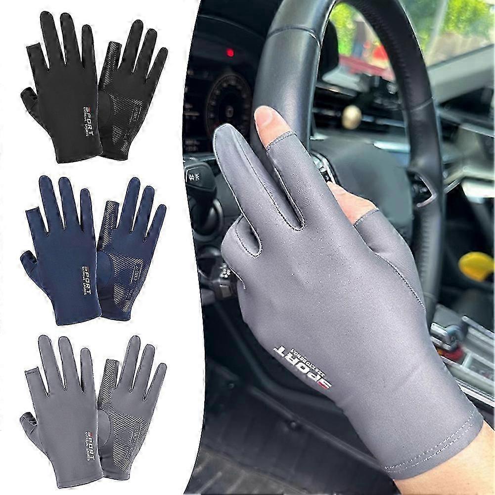 Sports Breathable Cooling Ice Silk Gloves UPF50+ Sun Protection for Cycling, Fishing & Driving Grey