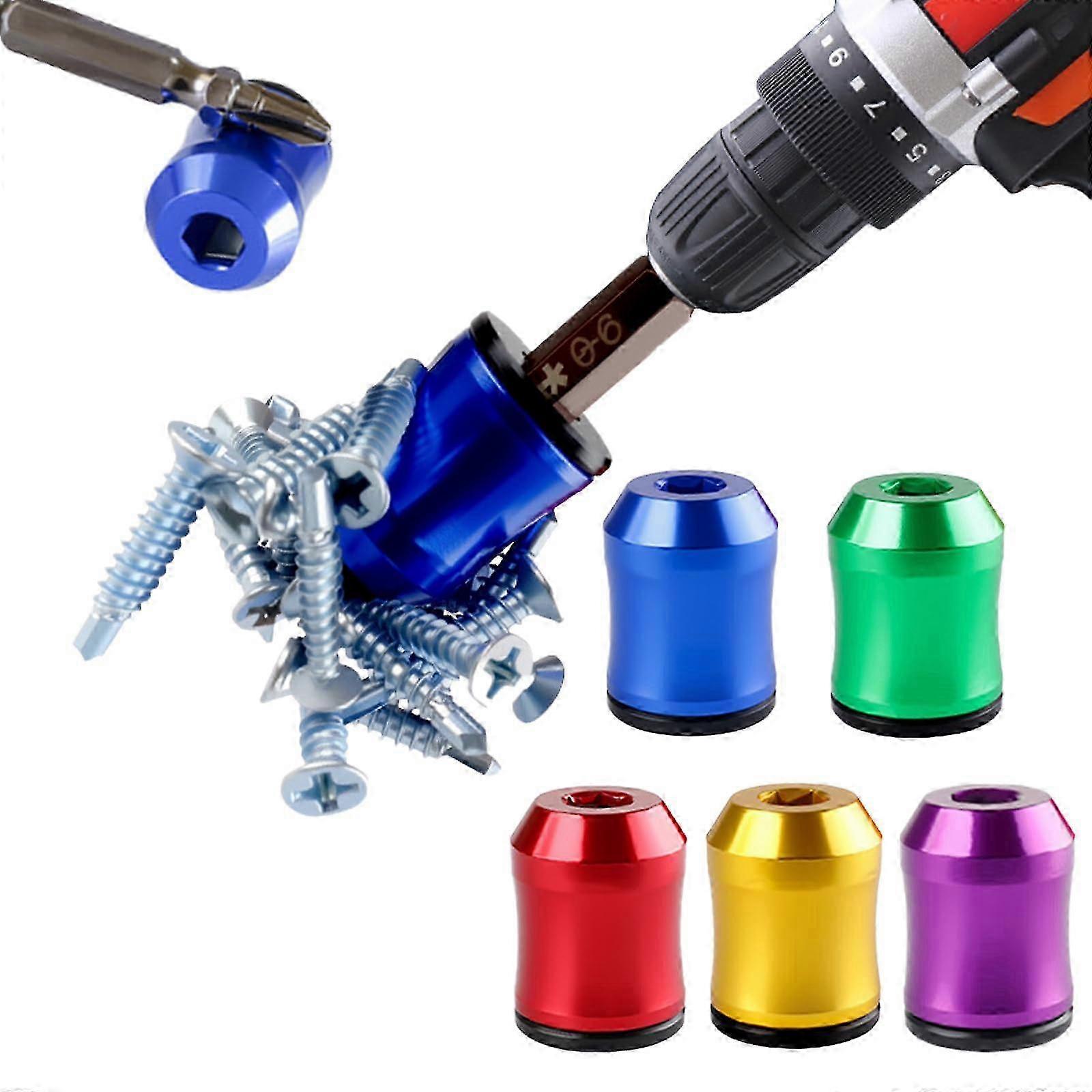 Description Features Function: these magnetic screw rings can magnetize screwdrivers, bits, hex wrenches, etc., easily and quickly catch the screw and fix it, reduce abrasion and improve work efficiency DOUBLE THE HOLD, HALF THE HASSLE: Twin-magnets generate a powerful magnetic field that grips screws firmly. Never fumble with dropped fasteners again—even in confined spaces or overhead tasks. HOLDS BITS TIGHT, WONT ROLL AWAY: Its precision-hexagonal bore firmly grips bits and screwdriver shanks, eliminating slippage during use. The external hex shape also prevents rolling on uneven surfaces, offering stability where it matters most. DESIGNED TO LAST : Machined from premium aluminum, this tool resists corrosion, impact, and daily abuse. Its rugged reliability meets the demands of workshop and jobs site alike. MAGNETIZE OR DEMAGNETIZE IN SECONDS: This tool instantly magnetizes screwdriver bits for strong screw retention or demagnetizes them with a simple flip—perfect for electronics. Its powerful grip drastically reduces dropped fasteners, streamlining workflows from assembly lines to DIY projects. Notice: 1.Actual color may be slightly different from the image due to different light effect 2.Please allow 1-3cm deviation due to manual measurement Description: Material: Aluminum Alloy Size: 2.3 x 1.8 cm Package List: 1/5pcs Magnetic Screw Holder Rings