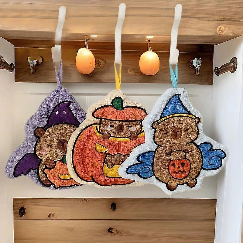 Cute Capybara Hand Towel Halloween Absorbent Towels Cartoon Kitchen Hanging Towel Handwashing Quick Drying Towels Bathroom