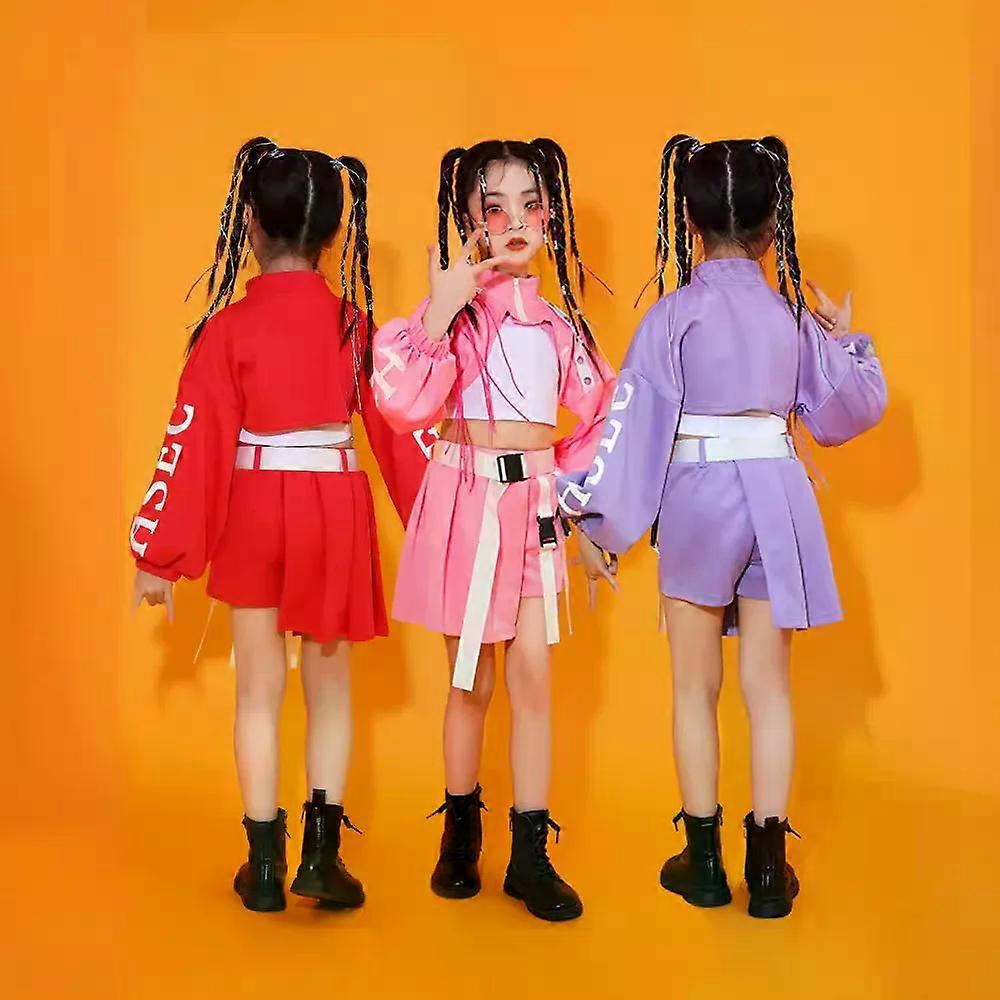 Kid Girl Jazz Dance Costume Children Street Hip Hop Dance Jazz Kpop Dance Costume for Girls Pink Outfit Streetwear Clothes Sets