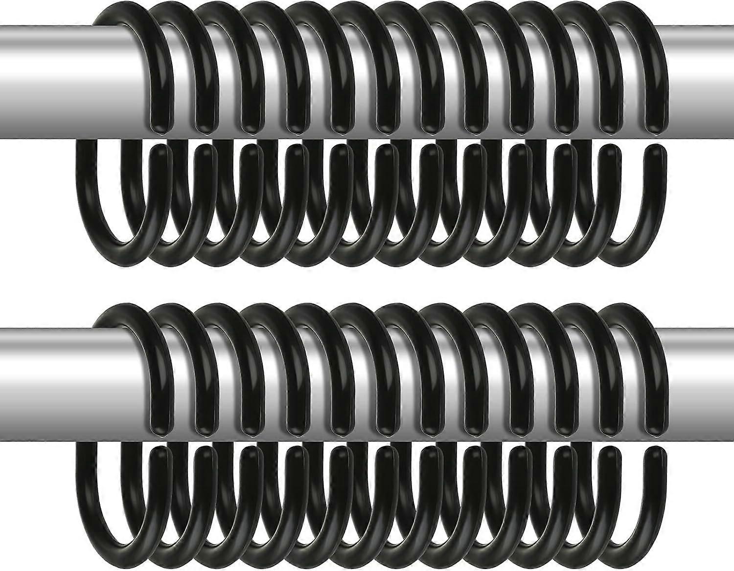 Contents: 24 shower rings; color: black Made of highquality plastic, solid and smooth. Dimension: about 45×30mm, suitable for most curtain rods. It is convenient to install and remove because of the small opening. The oval shape makes the hooks slide easily on the rod, has good stretchability and does not scratch the rod.