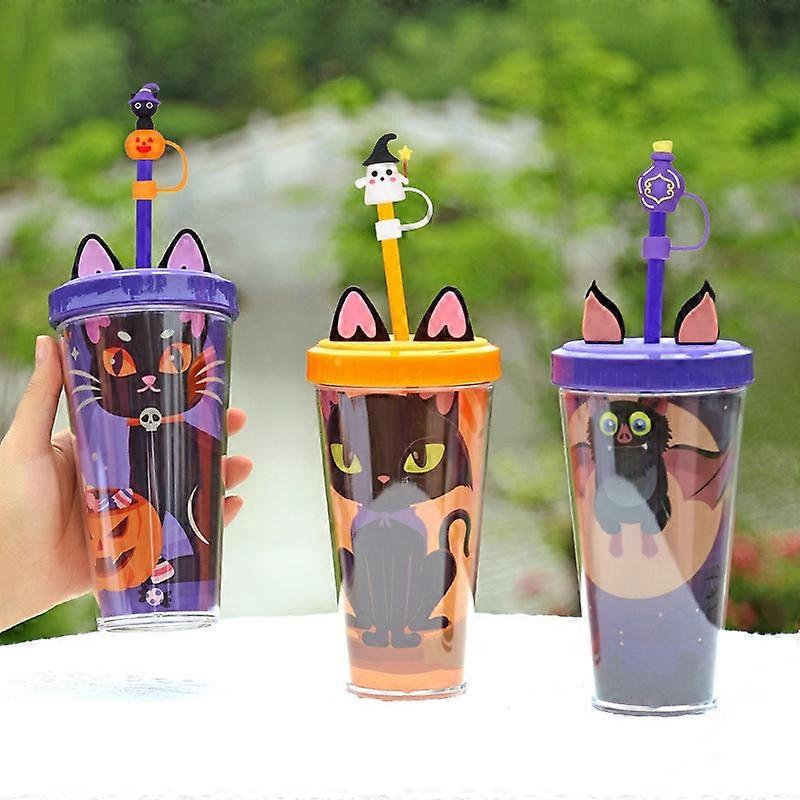Halloween 3D 10mm Silicone Straw Topper For Cup Halloween Cartoon Ghost Black Cat Straw Cover Cap Halloween Party Decor