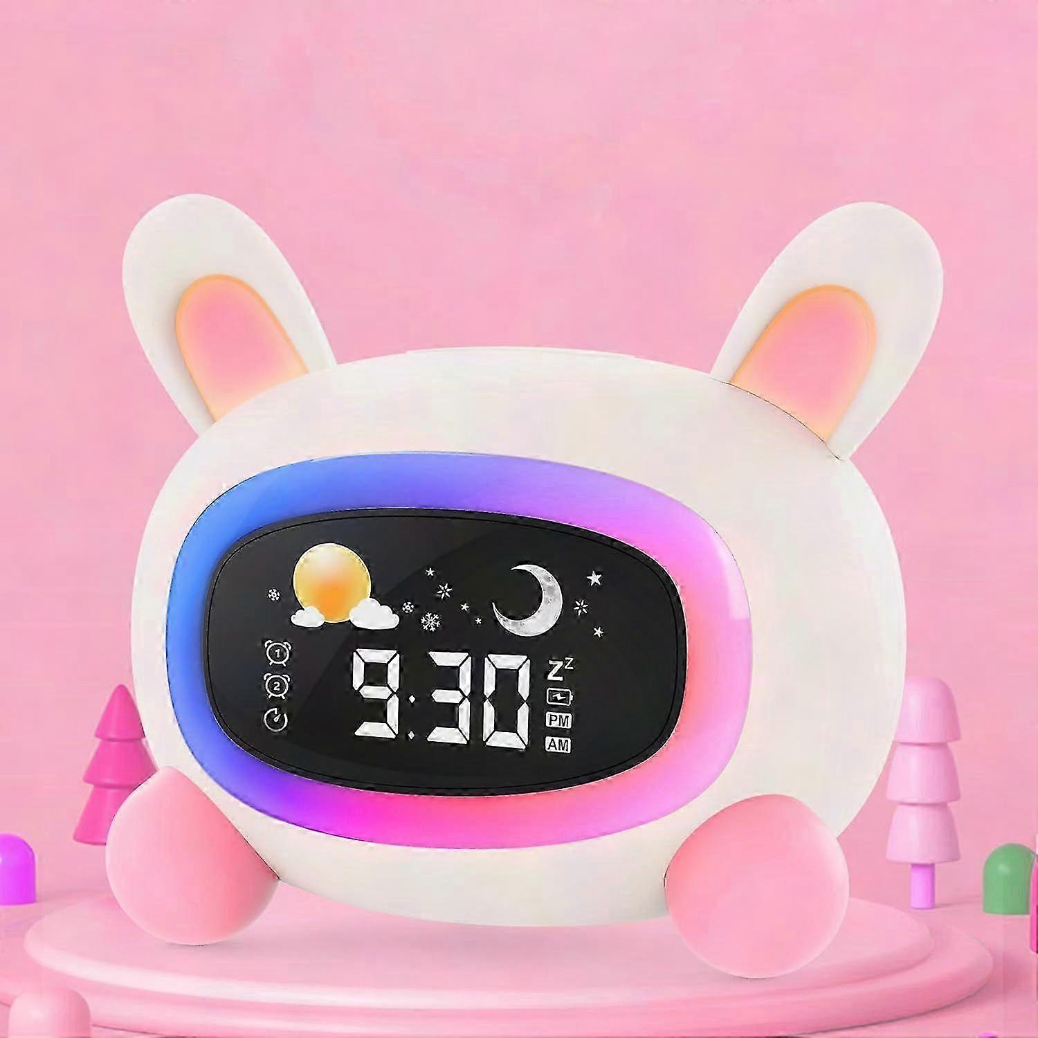 SCSYV Kids Alarm Clock with Night Light, Toddler Sleep Trainer & Sound Machine, Cute Rabbit Digital Clock for Girls
