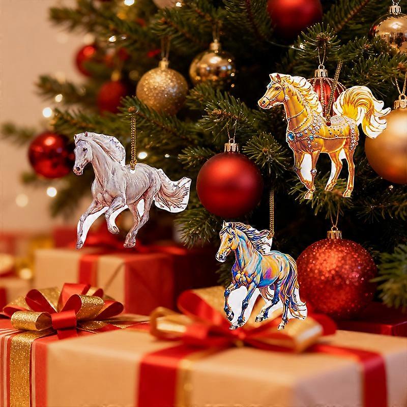 2D Acrylic Horse Pendant Christmas Tree Ornament New Year Decoration Navidad Party Decoration Xmas Ornament Charms Supplies