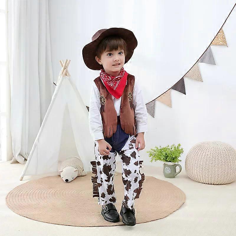 Boy's Halloween Outfit Set Western Cowboy Vest+Short Sleeve Tee+ Hat + Pants Set Autumn and Winter Clothes For Years Boys Fancy