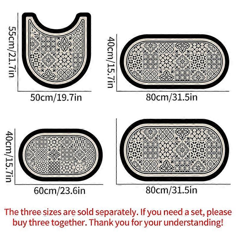 Retro U Shape Toilet Floor Mat Bathroom Non-slip Bath Mats Printed Absorbent Shower Rug Home Decor Entrance Doormat Oval Carpet