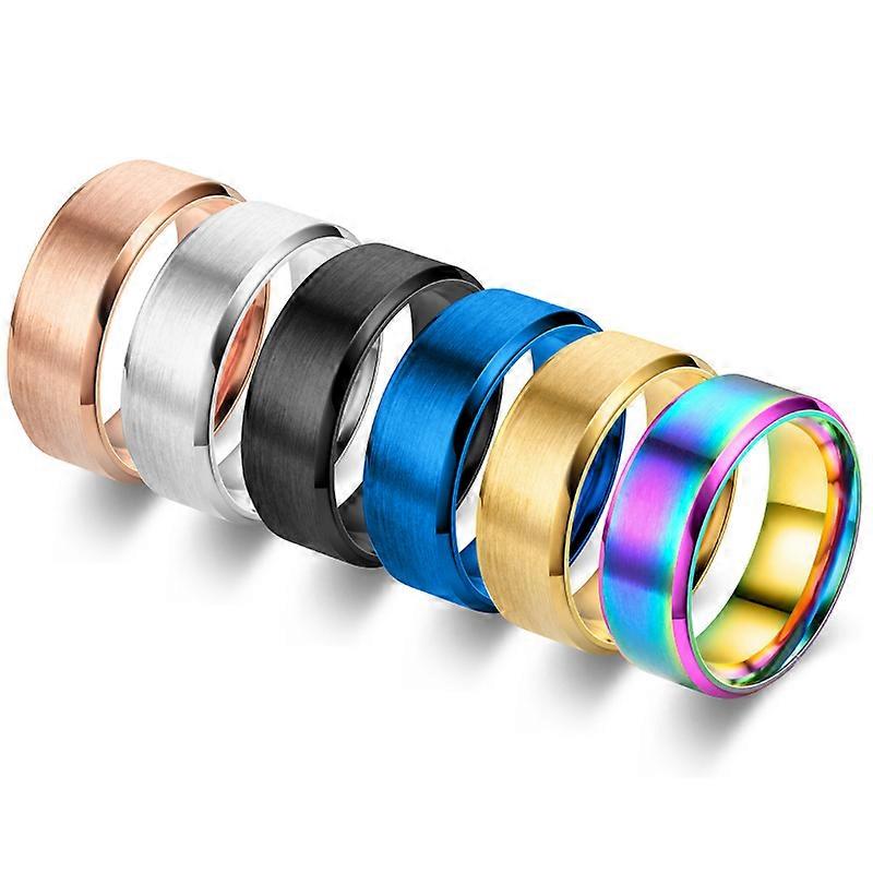 7 Colors Classic 8mm Mens Ring Surface Brushed Stainless Steel Simple Ring for Women Wedding Band Couples Jewelry Accessories