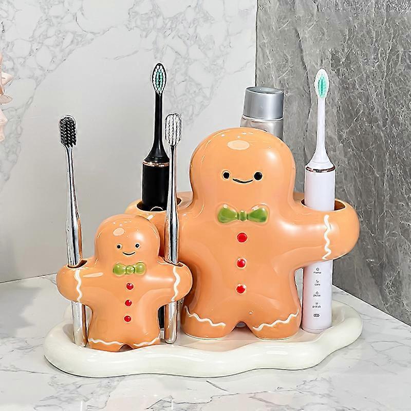 Christmas Electric Toothbrush Holder Gingerbread Man Storage Rack Ceramics Toothbrush Cup Xmas Cartoon Toothpaste Bathroom Suppl
