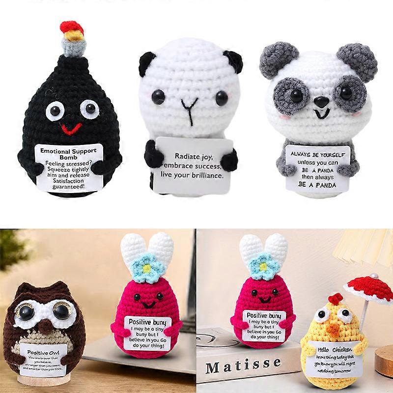 Crochet Ornament Positive Animals Tortoise Panda Home Office Desk Decoration Handmade Woven Car Interior Escritorio Accesorios