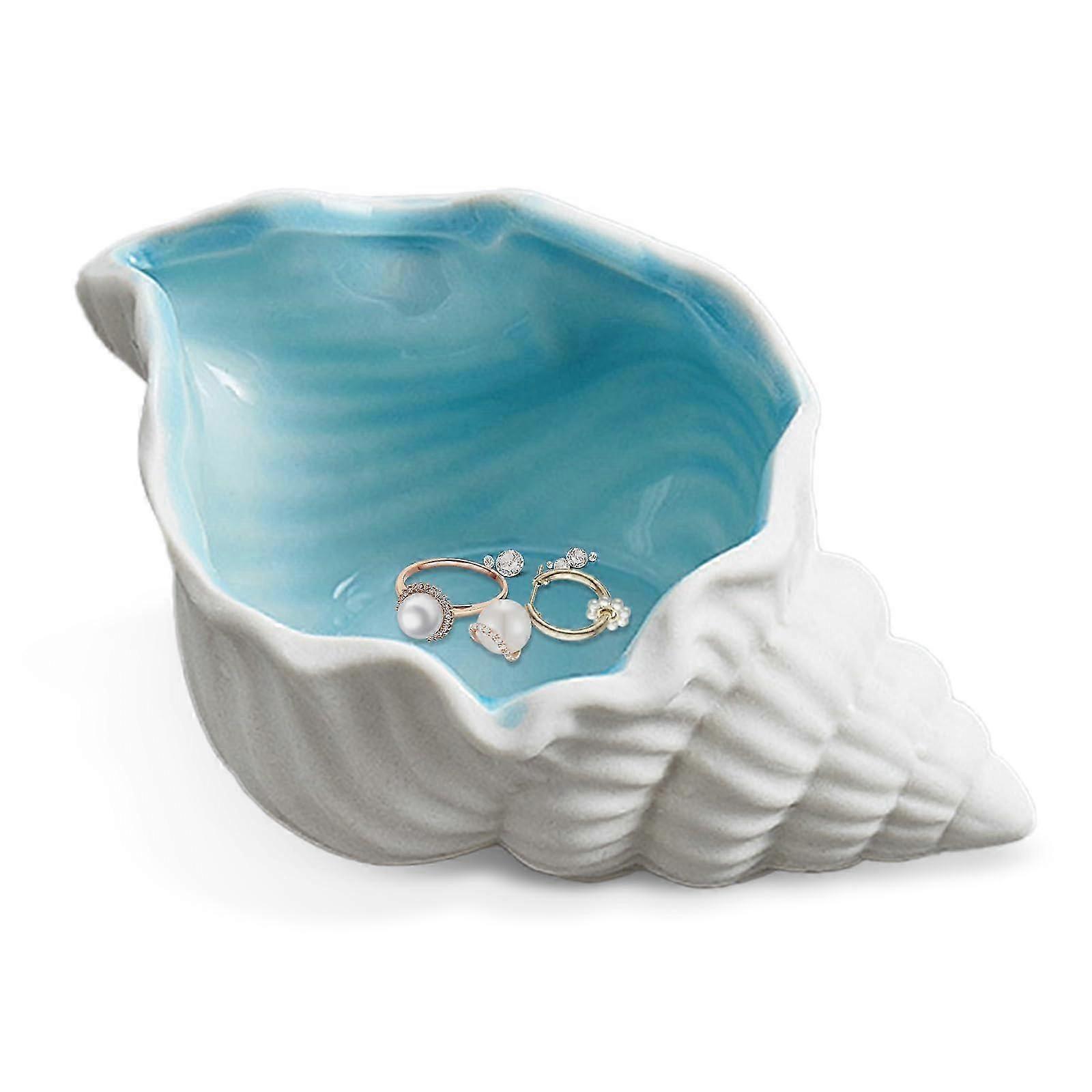 :Made of ceramic with a glossy and smooth surface, fine workmanship, the interior is also coated with an aqua bright glazed layer to keep the inner surface intact and suitable for your long-time use..Ocean Decor: Ceramic Jewelry Tray is blue and white ocean style, simple and fashionable; shells, starfish, and conch shapes are designed to make your decoration full of ocean style..Jewelry Dish Tray:it can be placed on the dresser, sink, desk or nightstand. A charming decorative item for your bathroom, bedroom, living room or anywhere you want..Widely Applicable:This delicate jewelry dish tray can be used to place a variety of small jewelry trinkets like earrings, rings, necklaces, bracelets, hair clips or keys, watches, coins and more. for storage..Surprise Gift:A lovely gift for bridesmaids, daughter, close friends, girlfriend, mother or as a treat for yourself. Great for housewarming parties, poolside, anniversaries, Valentine's Day or other special occasions. Note: Due to the light and screen setting difference, the item's color may be slightly different from the pictures. Please allow slight dimension difference due to different manual measurement.