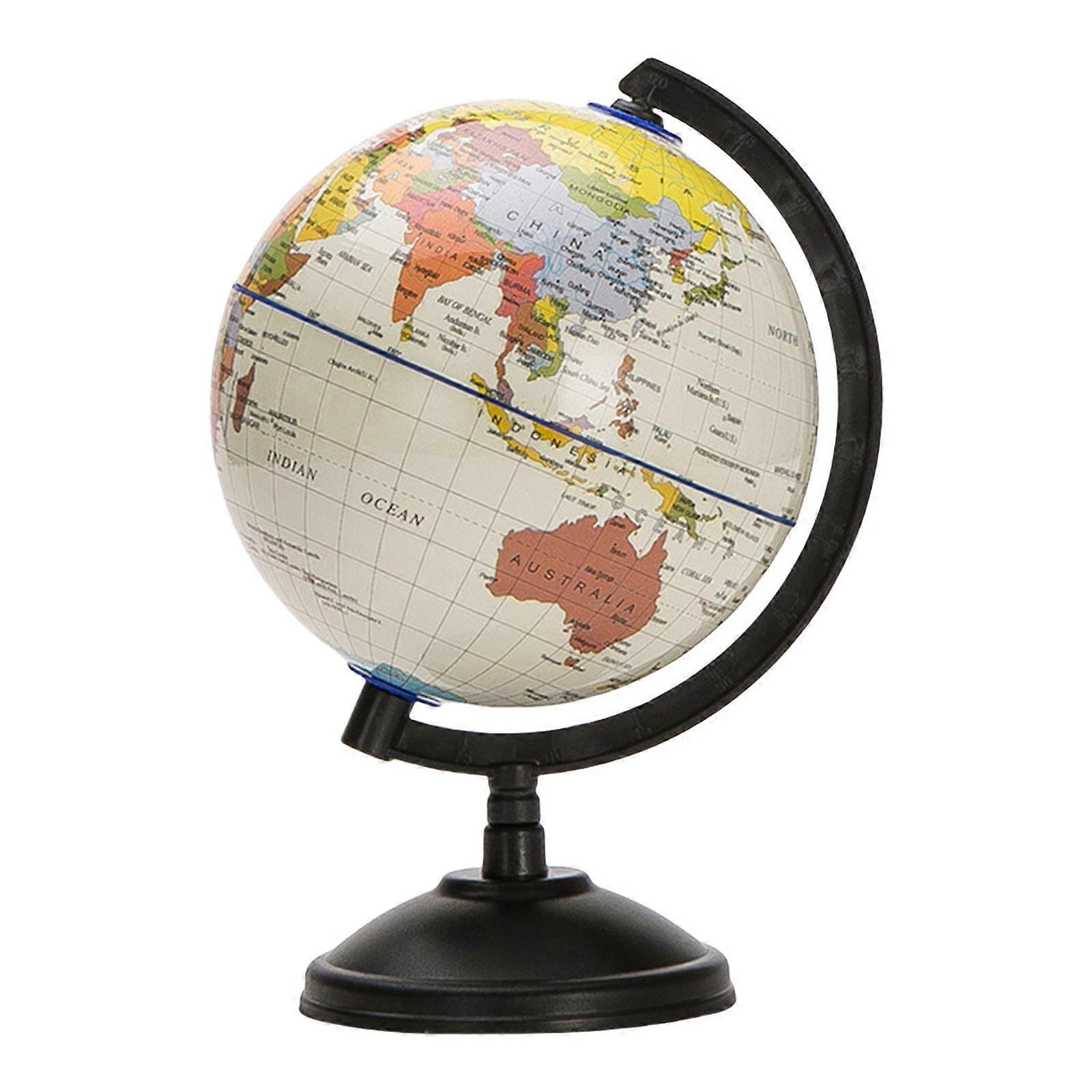 Features: This Educational Rotating World Globes features bright blue oceans, colored landmasses, political borders, ocean continents, islands, different countries, and it encourages inquisitive children to explore world geography science. Not only world map globes, but also children educational tool, classroom geography teaching aids, office desk decoration and holiday present for age 8+ child, student and teen. Our Geography Educational World Globes with display stand. 360 degree rotating allows for interactive learning experiences, children can play the world travel game with friend or family. By rotating world globe to find out different countries, continents, inspire their enthusiasm for geography learning. Makes geography science learning fun! Desktop world globes with stand, size: 14.2x22cm (5.59x8.66inches). Proper size for office desk, sturdy desk, bookshelf. Specifications: Component: PVC Color: As picture shown Size: Approximately. 14.2x22cm/5.59x8.66in Weight: Approximately. 230g Package Includes: 1Piece World Globes with Stand note: 1.Please allow 0-1cm error due to manual measurement. Be sure you donot mind before bid. 2.Due to difference between different monitors, the picture may not reflect the actual color