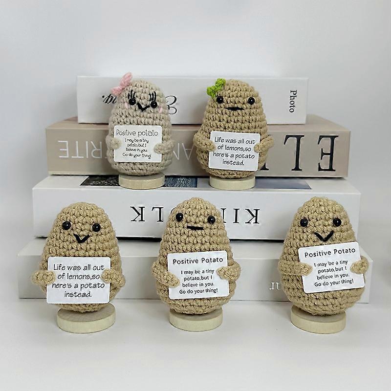 Funny Positive Energy Potato Hug Pocket Doll Mini Handmade Plush Knitted Plant Ornament Home Room Decoration Christams Gifts