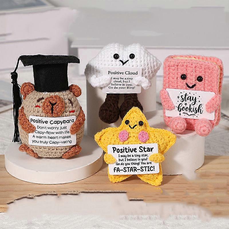 Funny Crochet Emotional Support Cloud Doll With Card Desktop Ornament Handmade Knitted Cake Dolls Christmas Gifts Home Decor