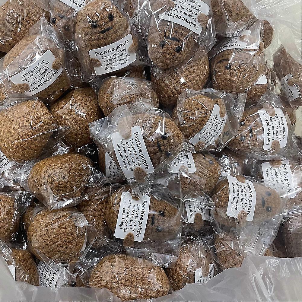 Handmade Positive Potatoes Doll With Card Home Decoration Cute Knitting Wool Yarn Frog Doll Ornament Christams Party Room Decor