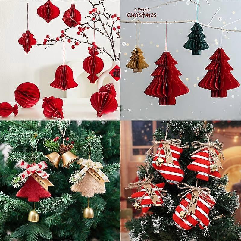 Christmas Decorations Paper Honeycomb Ornaments Mini Hanging Paper Lanterns for Christmas Tree Pendant New Years Party Decor