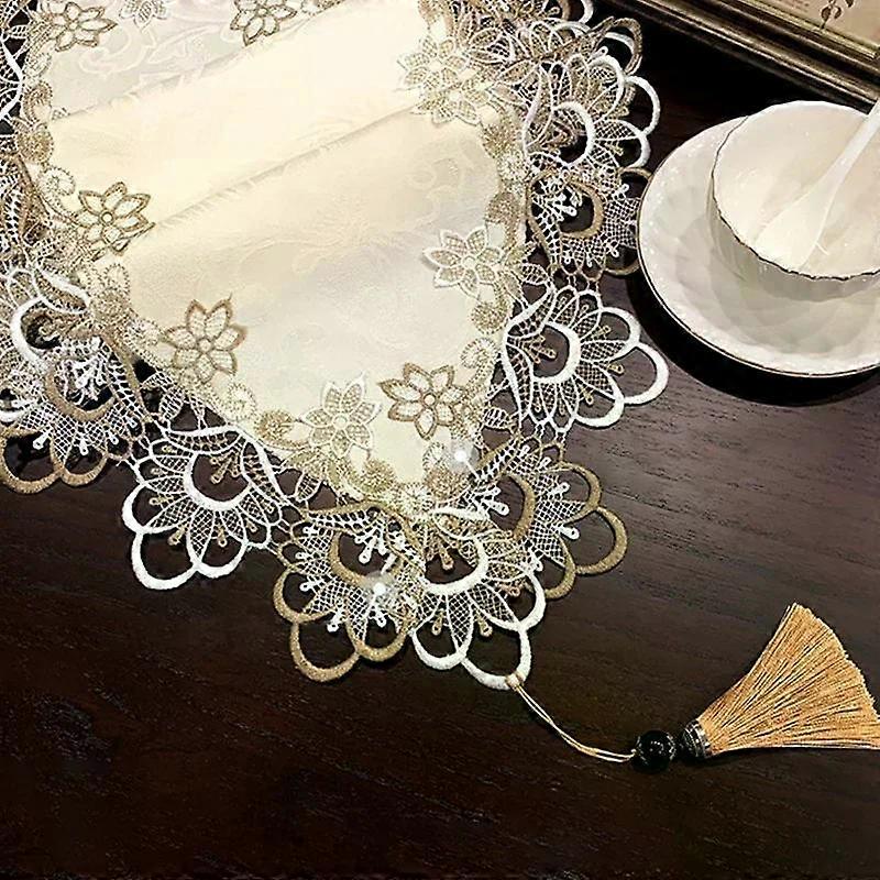 Vintage Lace Tablecloth TV Cabinet Table Runner Embroidered Table Cover with Tassel Christmas Tables Decorations Anti-dust Cover