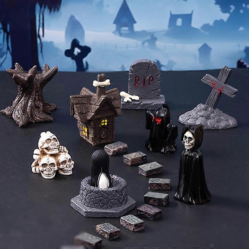 Halloween Miniatures Skull Figurines Halloween Micro Landscape Desktop Ornaments Mini Horror Figurine Halloween Decoration