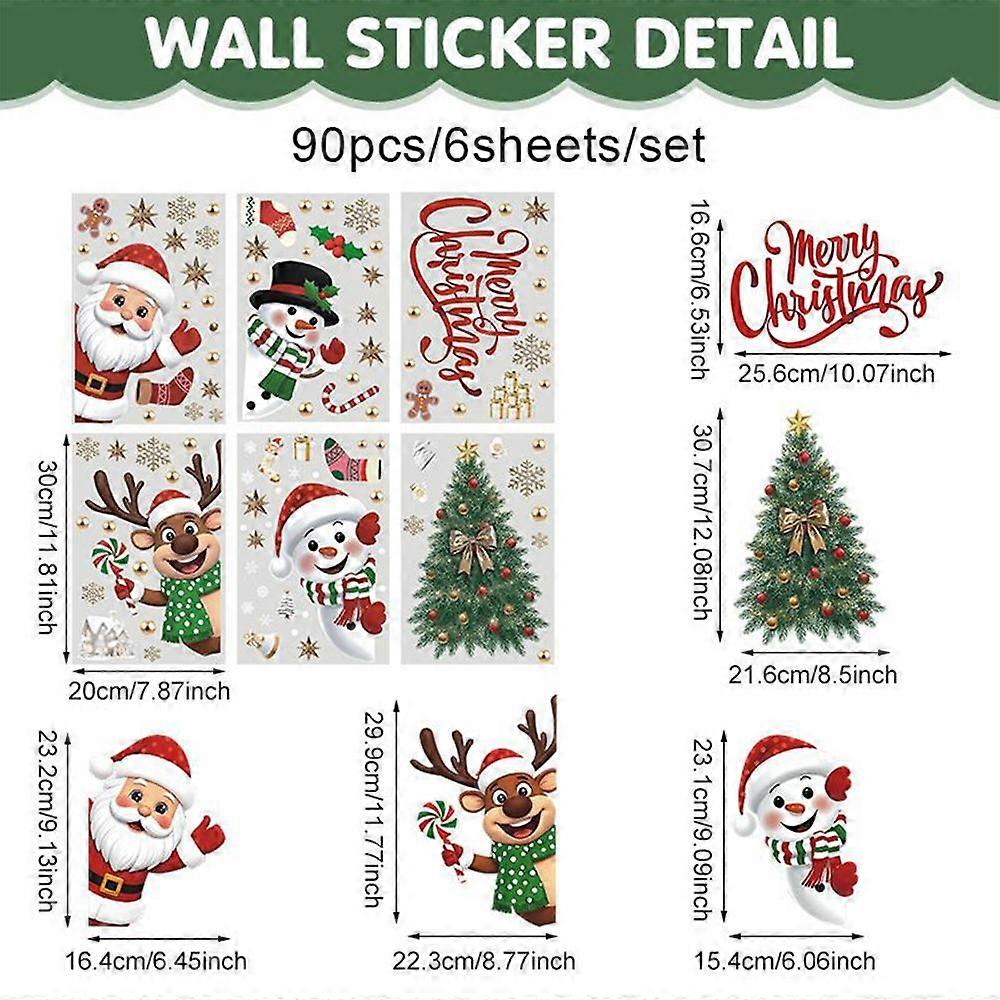 Christmas Window Clings Holiday Snowflake Santa Claus Reindeer Tree Snowman Stickers 6 Sheet Christmas Self-Adhesive Reusable