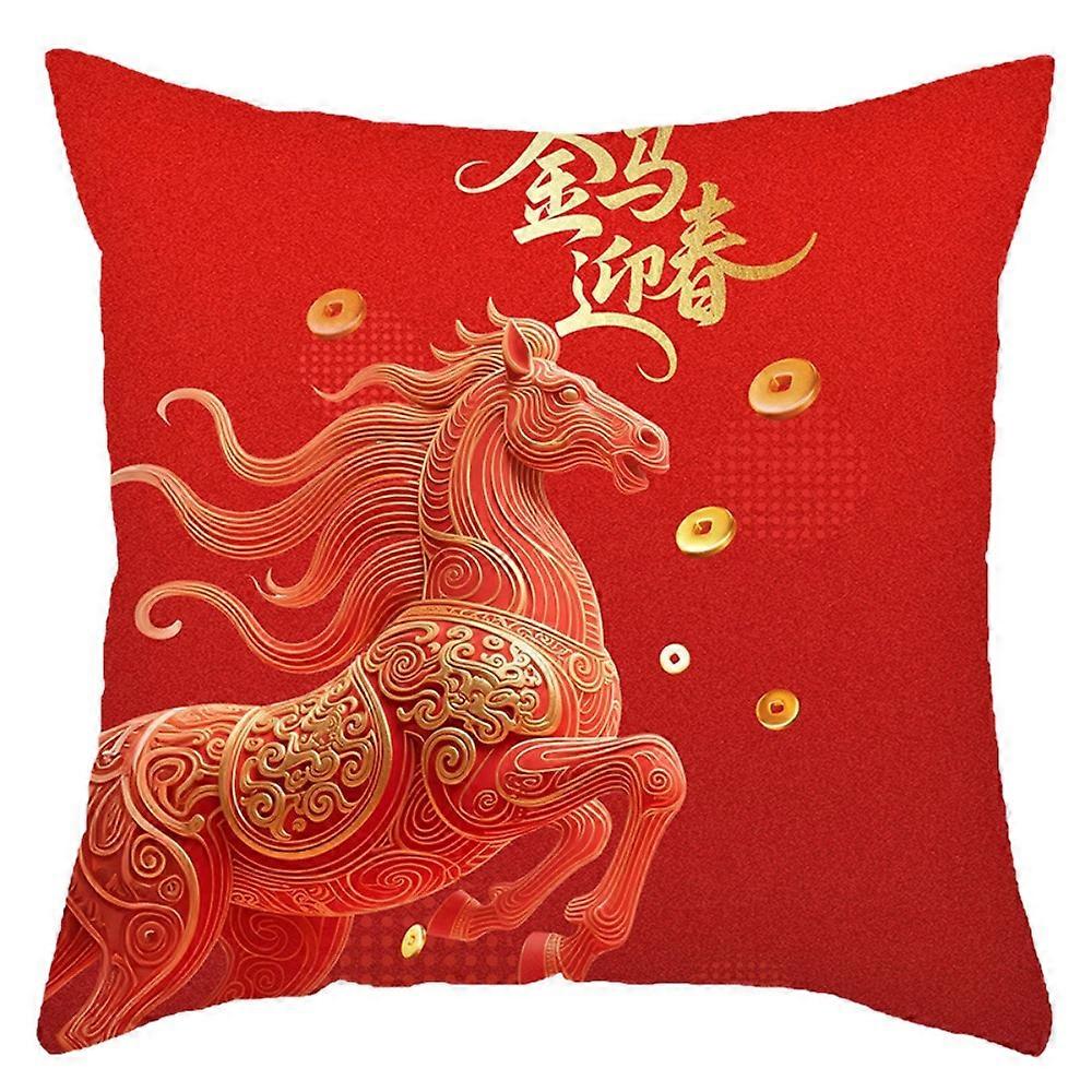 New Year of the Horse Spring Festival Cushion Cover Pillow core protection Square Shape Pillowcase Removable Cushion Slipcover