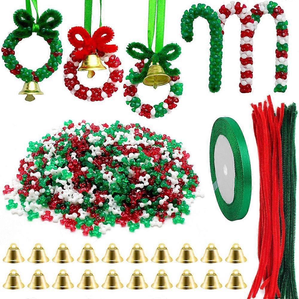 Handmade Christmas Beaded Decoration Set DIY Decorative Pendants 1500 Pieces Triangle Beads Christmas Tree Decorations with Bell