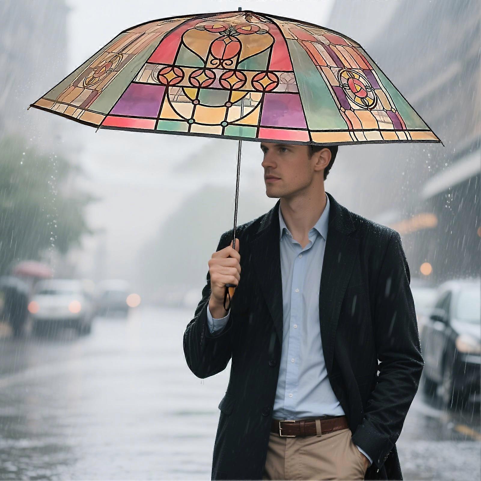 Parasol Umbrella Stain Glass Folding Umbrella Decorative All-Weather Artistic Strong Frame Parasol For Girlfriends College