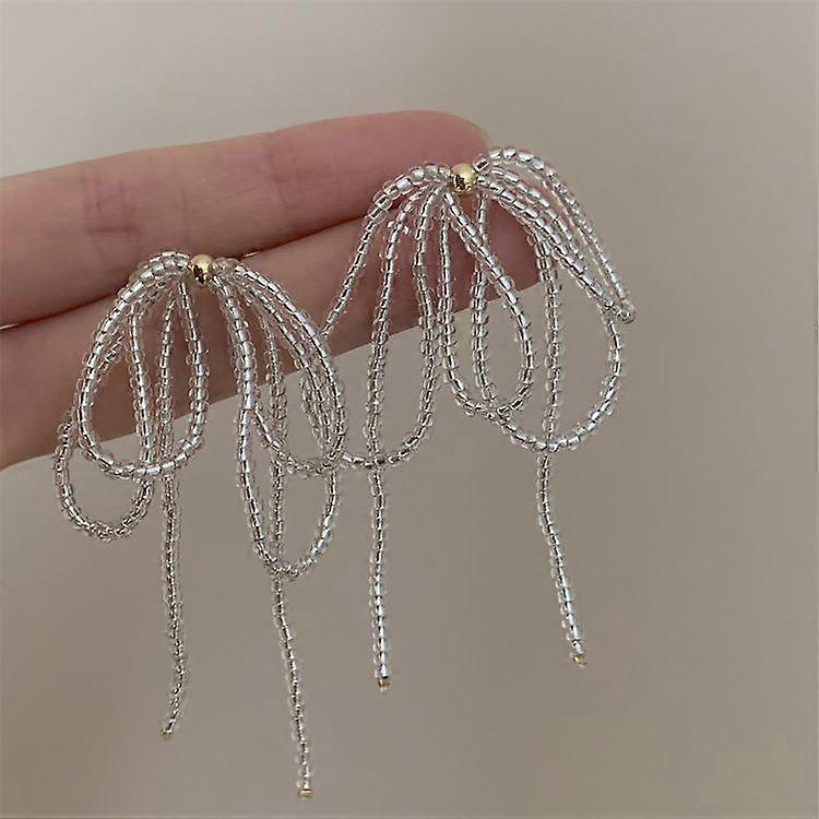 Korean Tassels Beads Bowknot Ear Studs Earrings for Women Girls Sweet Cool Luxury Ribbon Bow Drop Earrings Wedding Jewelry Gift