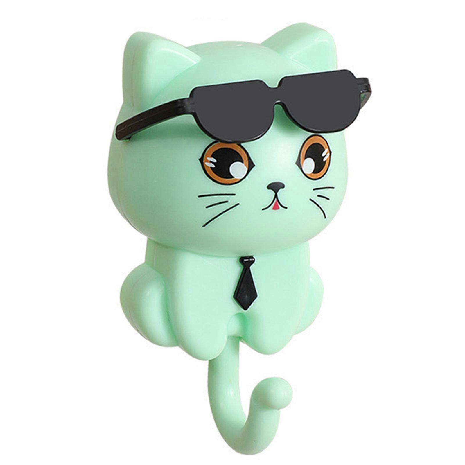 Cartoon Cats Hooks Cool Cat Sunglasses Wall Storage Racks For Keys Towels Adhesive Decorative Hooks For Home Kitchen Organizer
