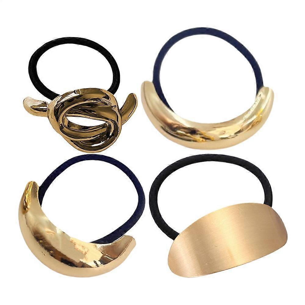 4PCS Classic Irregular Geometric Hair Ties Gold Silver Metal Ponytail Holder Hair Cuff Rope Women Girls Elastic Rubber Band