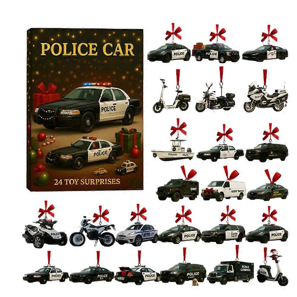 Car Ornament Christmas Advent 24 Days 2D Acrylic Decoration Policeman Car Countdown Calendar for Home Christmas Tree Car