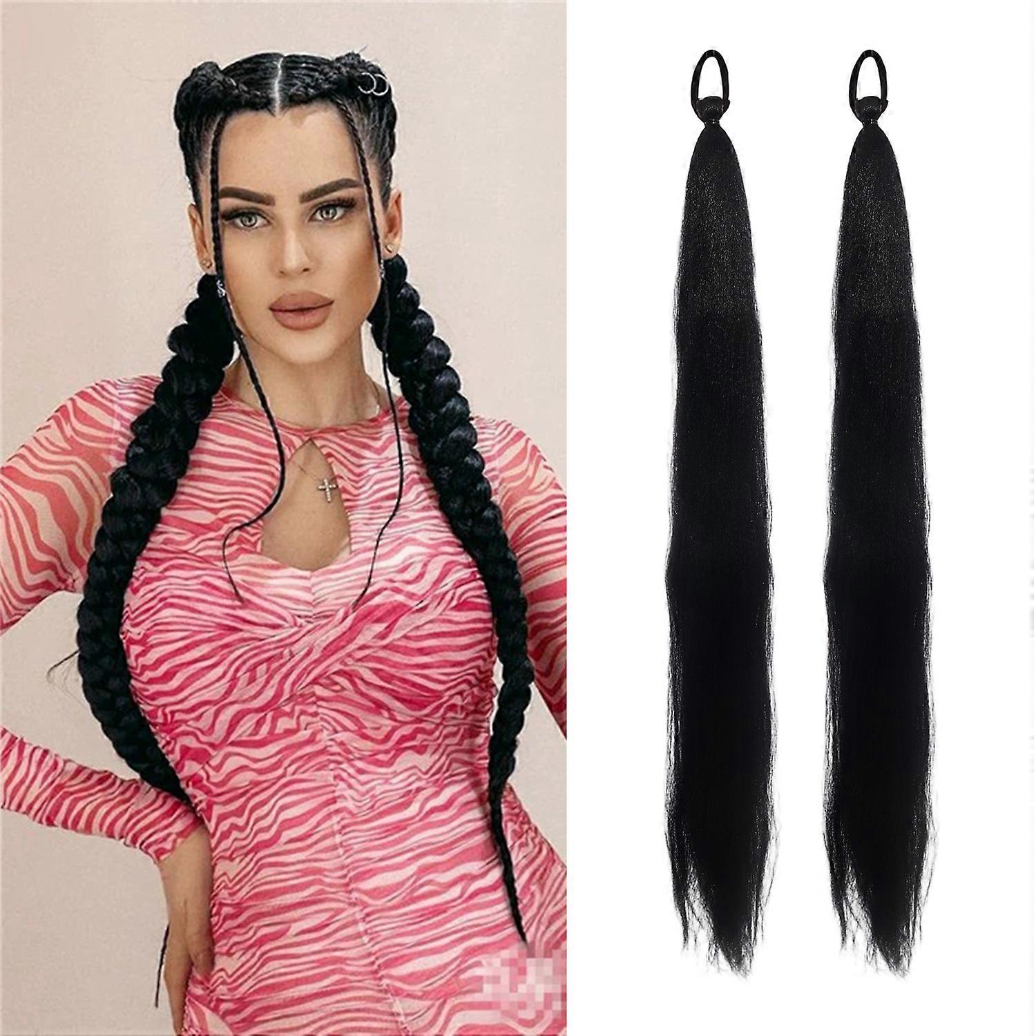 Women Hairpiece DIY Hair Accessories Y2K Gothic Fake Long Hair Ponytail Hair Clip with Rubbers for Women Girls Headwear Braid