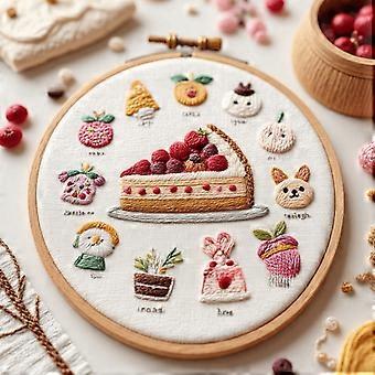 Dessert Bread Dessert Cake Embroidery Kit Thread Needle Stamped Cloth Stamped Cross Stitch with EN Instructions DIY