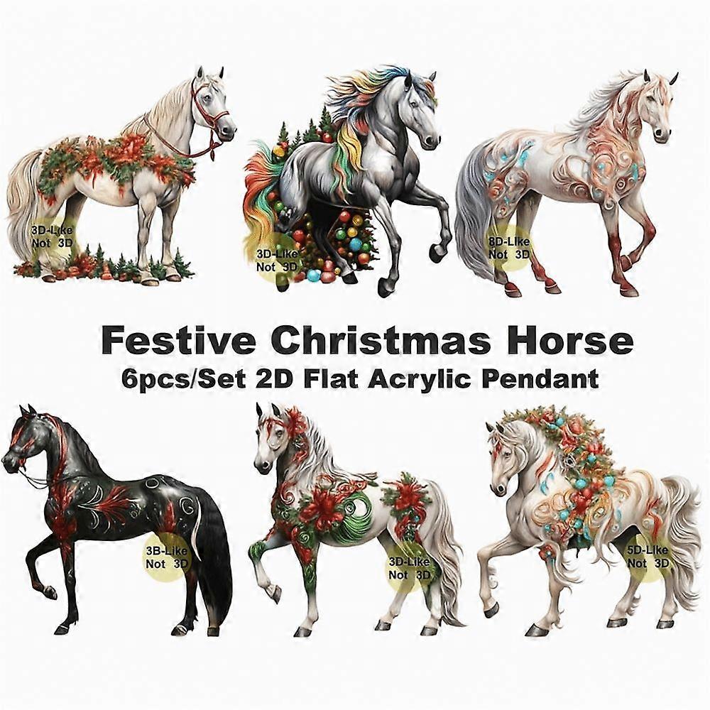 White Horse Christmas Hanging Pendant 2D Flat Acrylic Car Horse Pendant Bag Pendant Charms Christmas Tree Ornament