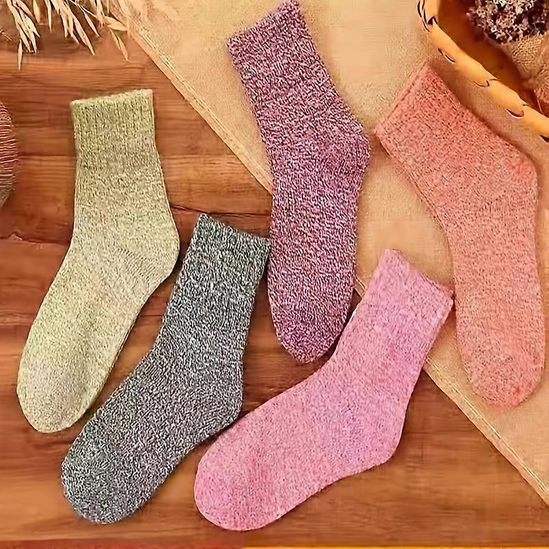 5-Pair Women's Comfortable Winter Socks - Warm Mid Tube Knitted Socks with Ribbed Cuffs Perfect for Outdoor Activities