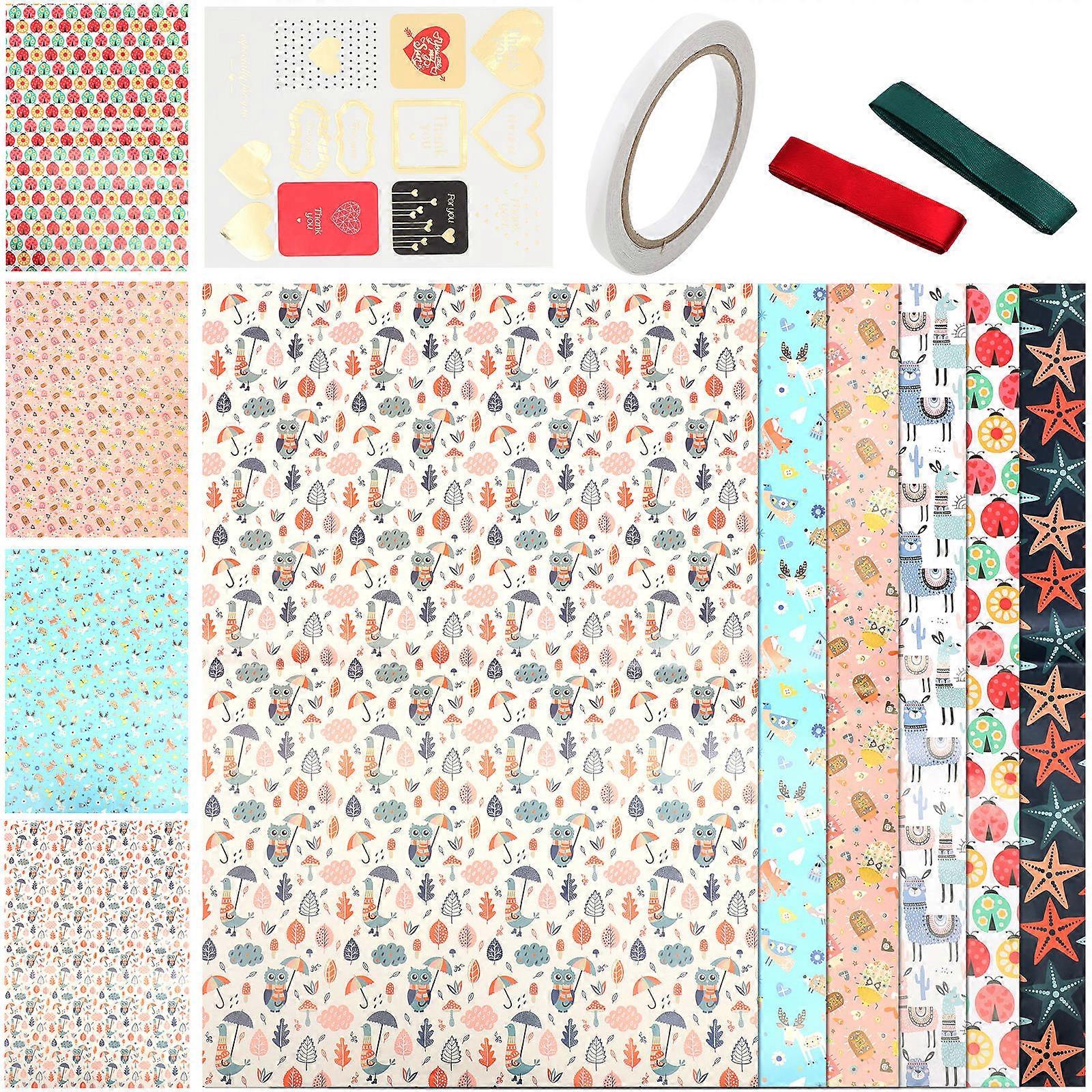 Floral Packaging Paper for Wedding Decoration Gift Wrapping Assorted Color 1 Set