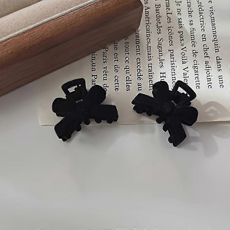 2PCS Velvet Bow Clips - Christmas Hair Claws for Women, Elegant Princess Snap Clips, Sweet Minimalist Hair Accessories Gift Set