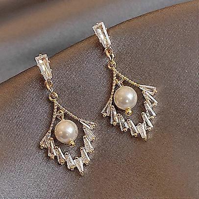 1 pc zircon imitation pearl earrings with a simple and minimalist design, internet famous earrings and earrings