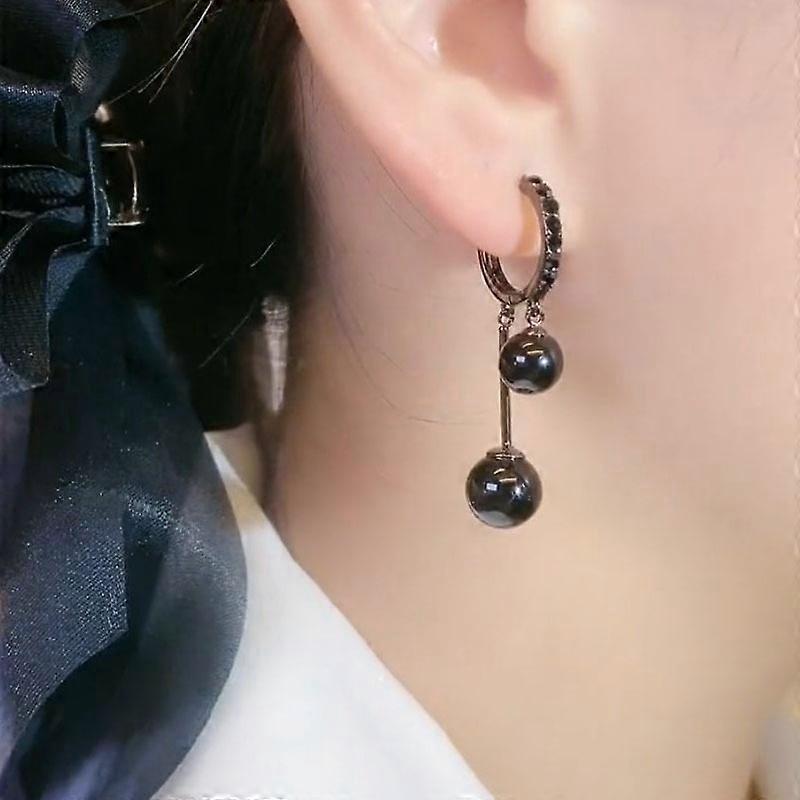 1 pair of autumn and winter black ball pearl earrings, women's high-end temperament earrings