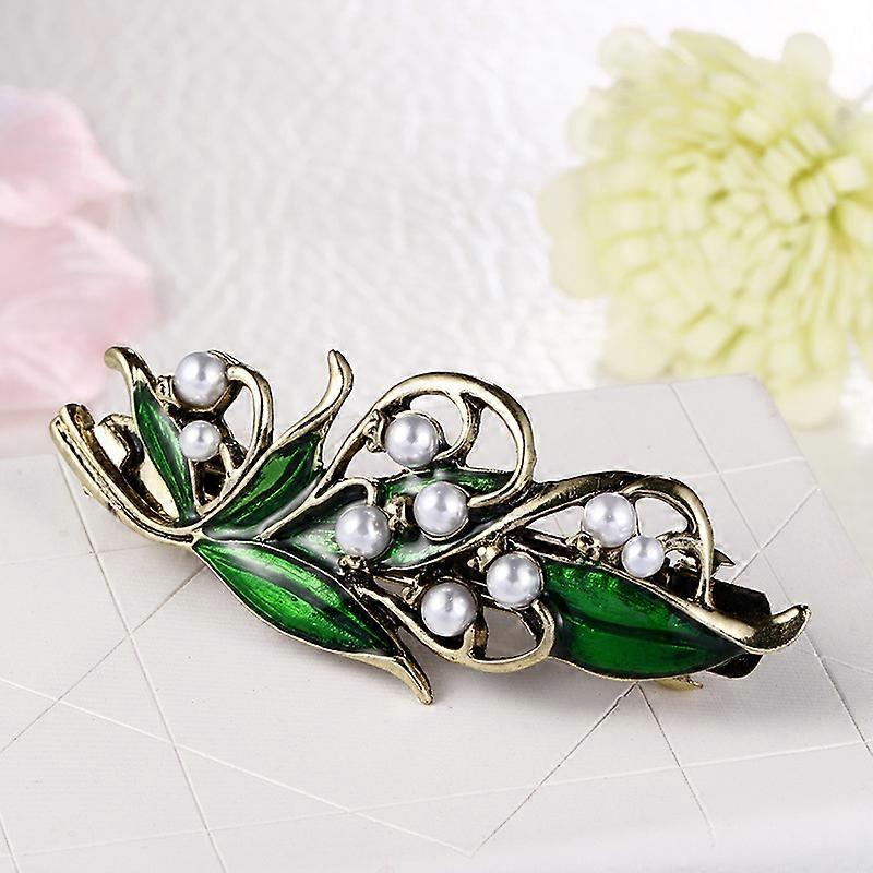 1 piece of European and American cosplay green pearl hair clip, bow spring clip